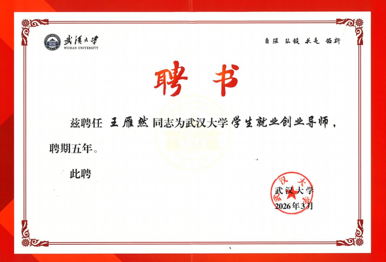 ▲王雁然董事長受聘為武漢大學(xué)學(xué)生就業(yè)創(chuàng)業(yè)導(dǎo)師