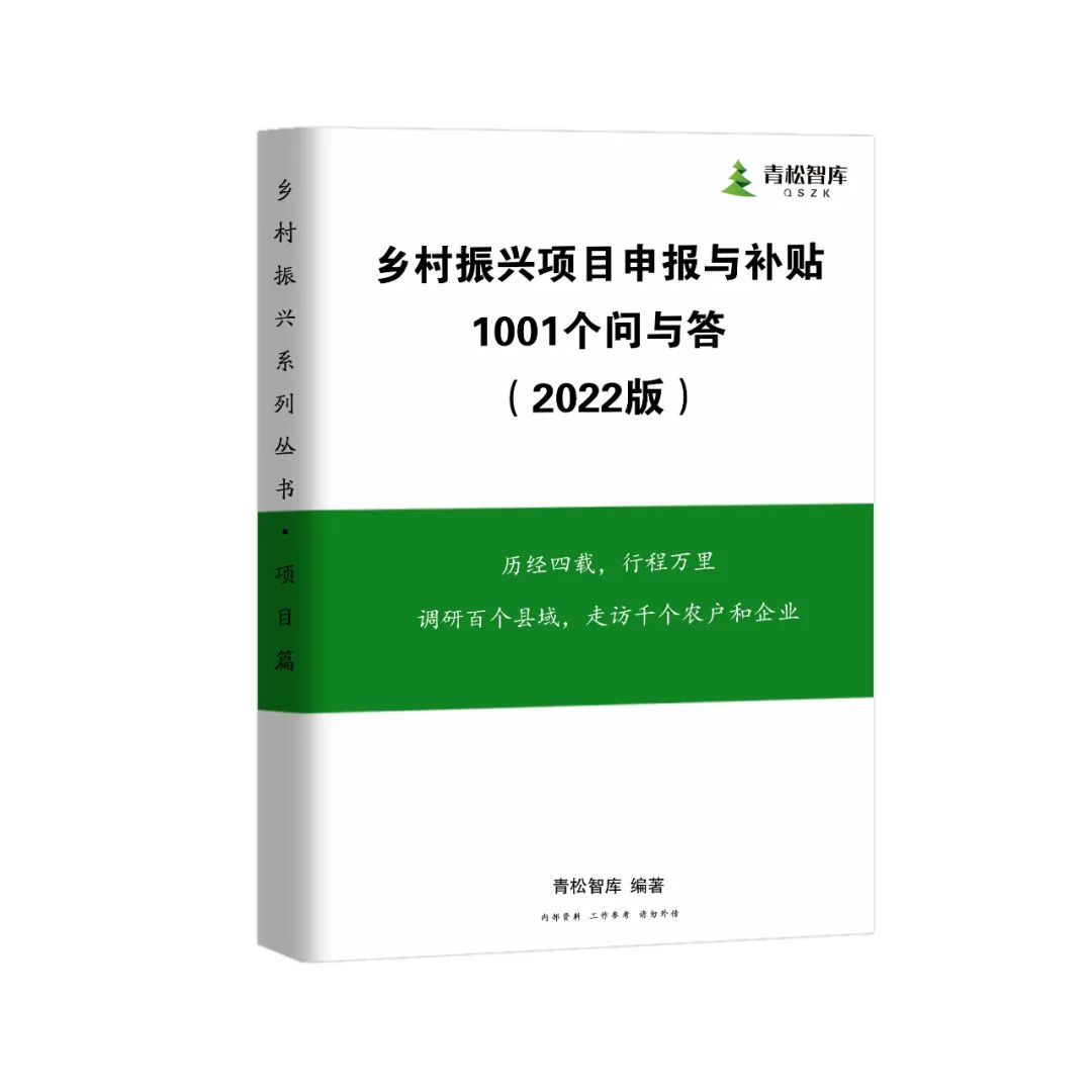 歷經(jīng)四載,行程萬里,調(diào)研百個縣域,走訪千家農(nóng)戶(或企業(yè)),凝聚匠心,由青松智庫編制的《鄉(xiāng)村振興項(xiàng)目申報與補(bǔ)貼1001個問與答》內(nèi)部資料,數(shù)量有限,是常用工作參考工具書,有需要的請加緊與青松智庫聯(lián)系。