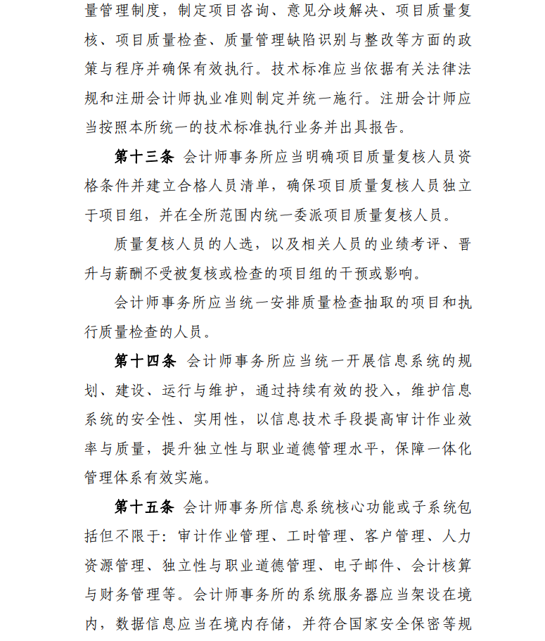 為貫徹落實《國務院辦公廳關于進一步規范財務審計秩序促進注冊會計師行業健康發展的意見》(國辦發〔2021〕30號)有關要求,加強會計師事務所內部治理,提高質量管理水平,根據《中華人民共和國注冊會計師法》、《會計師事務所執業許可和監督管理辦法》(財政部令第97號文件修改發布),我們制定了《會計師事務所一體化管理辦法》,現予印發,自2022年10月1日起執行。