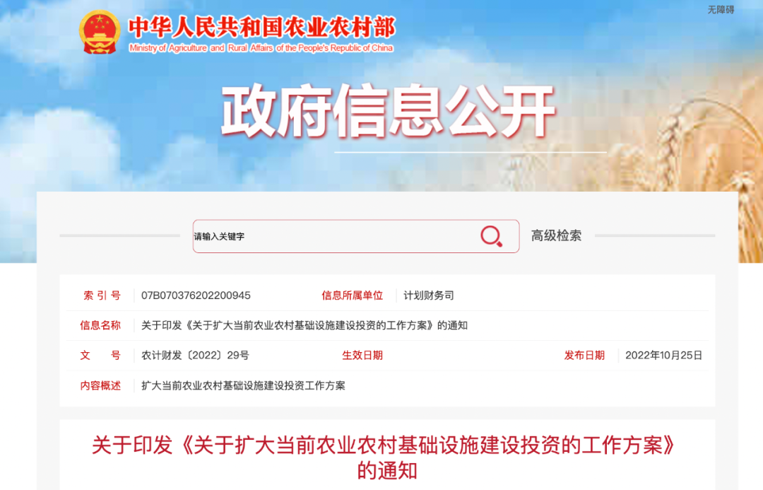 從現在到年底前,聚焦農業農村基礎設施短板弱項,突出抓好大中型灌區等水利設施、小型農田水利設施,以及現代設施農業和農產品倉儲保鮮冷鏈物流設施等項目建設,確保盡快開工、盡快見效。