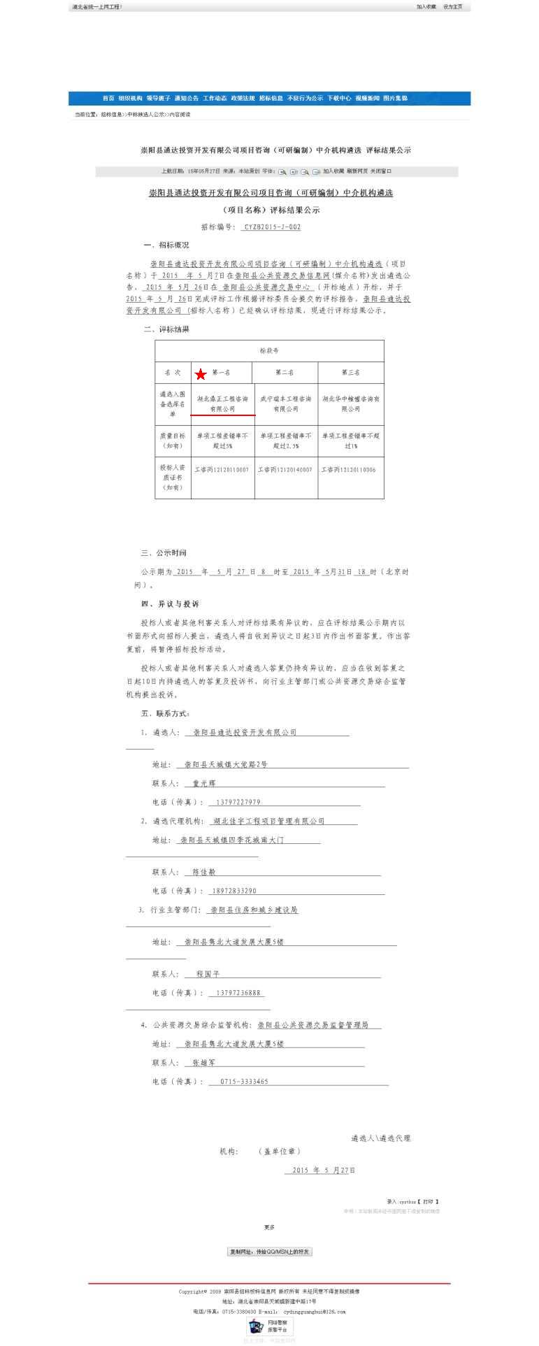 【經營成果】我司入圍崇陽縣通達投資開發有限公司項目咨詢(可研編制)中介機構庫