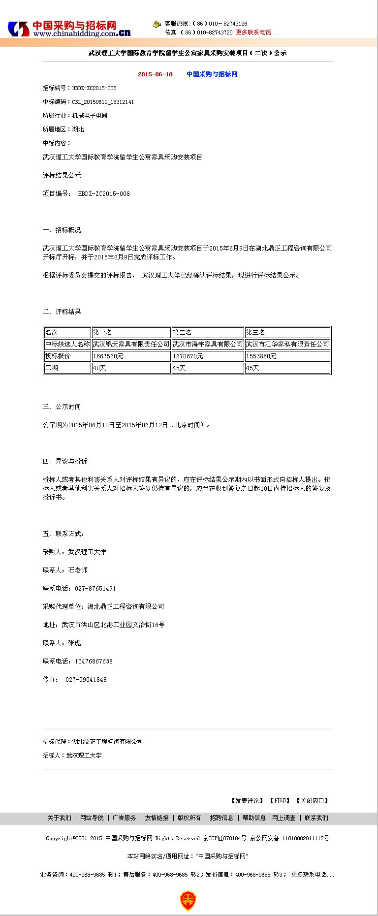 武漢理工大學(xué)國(guó)際教育學(xué)院留學(xué)生公寓家具采購(gòu)安裝項(xiàng)目(二次)公示