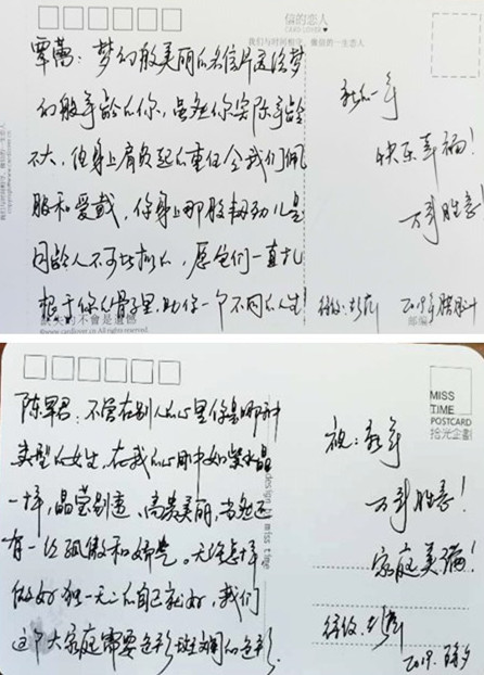 ▲彭總寫給覃蕾、陳軍君的祝??ㄆ?br />